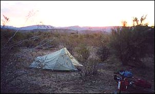 7:30 PM: About 47 km (29 miles) today. I'm camped in the desert off of Schoolhouse Point Road, a few miles east of Tonto National Monument. I followed a rutted track off the road to this spot.