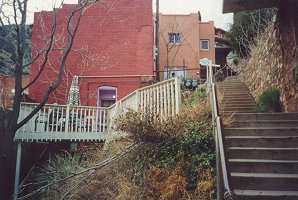 December 31st. Rest day. January 1st, 2002. Happy new year. Still at the Stair Haven Hostel. It's around 6pm and I'm waiting for my rice and brocolli dinner to cook. Feeling quite wasted. Some party animal I am! Had one beer around 10pm last night, then danced in the streets until just after midnight. Feels more like I drank a whole case though and stayed up all night. I suppose other people around here did exactly that - quite the small scale Mardi Gras last night in the Old City of Bisbee. Lots of hippy kids and all kinds of folks really. Lots of music and other performers. Just about the right size street party for my taste in crowds. I'm quite comfortable at this hostel, but I'm finding the constant blather, especially from one guest, is getting a bit much. Also having the TV in the middle of the common room is very irritating, at least for me. Definitely time to hit the road again. | ||