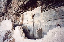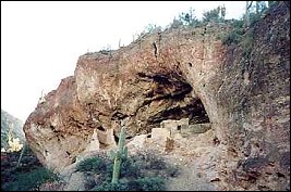 I paid my 3 buck entrance fee at the visitors center and headed up the trail to the Lower Ruins. These ruins of a small 19 room pueblo village were built within a shallow cave by the Salado people nearly 700 years ago. The Salado lived in teh Tonto Basin for some 300 years, until they abandoned the area around 1450. It is possible to walk through these ruins and to try to imagine what life in them must have been like. Claustrophobic and smoky is what I imagine. These rooms are not very big with very low ceilings and small entrances. Each housed a family and served as bedroom, living room and kitchen, with cooking fires built in depressions in the floor.